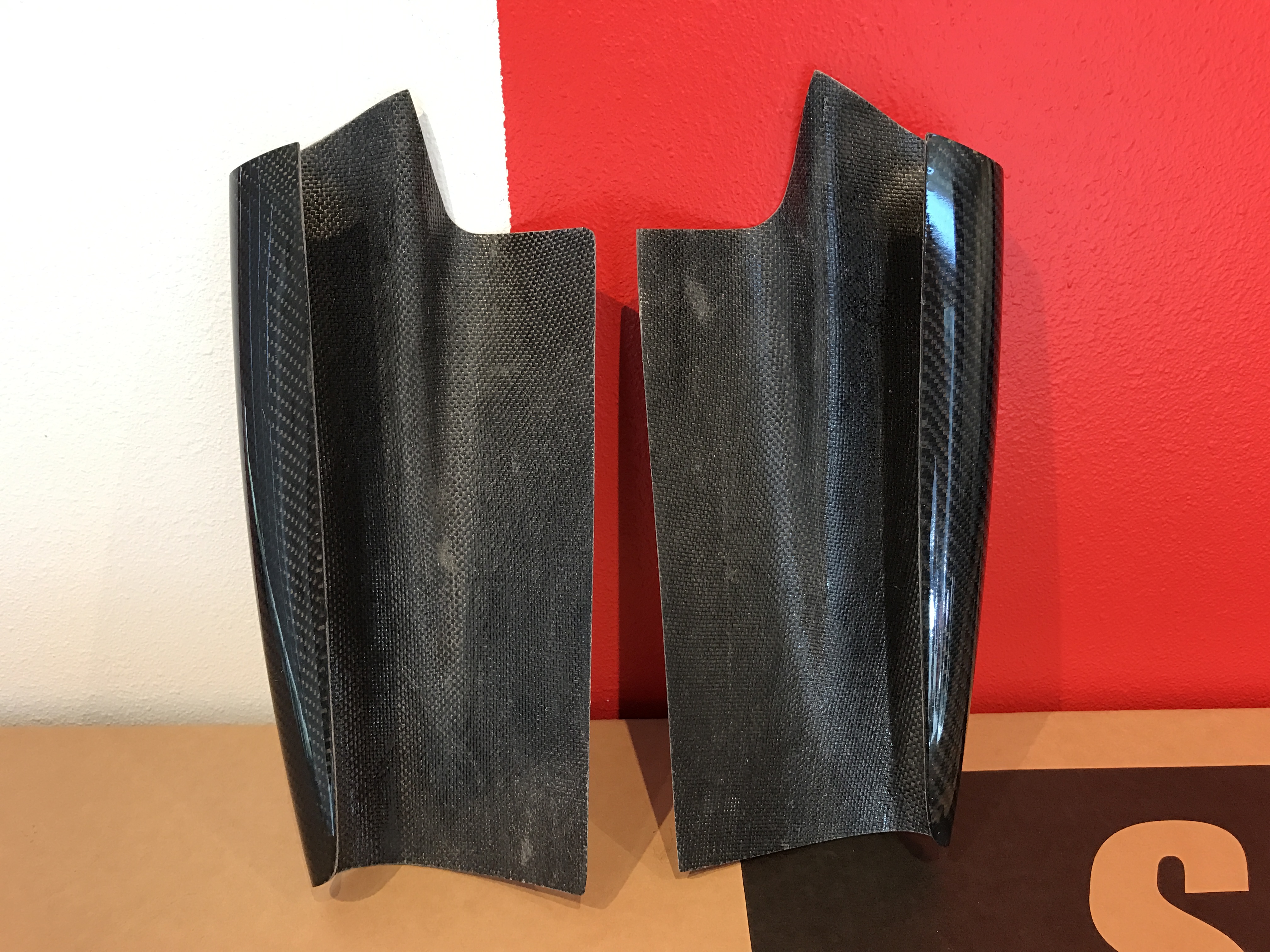- Carbon and Carbon-Kevlar versions are reinforced with an extra layer of carbon fiber for superior strength along with a cleaner looking backside finish. The extra carbon fiber backside reinforcement maintains a black finish unlike parts reinforced with fiberglass mat or fiberglass cloth, which tend to have a scuffy white finish.